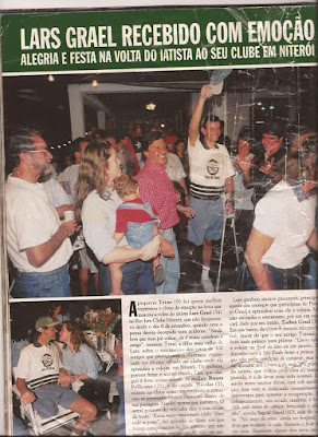 Meu amigo Paulo Pessoa Jr. me enviou hoje um ótimo presente: a matéria da revista Caras, de 23/10/1998, registrou o dia que o meu irmão Lars Grael voltou a Niterói e foi recebido com muita emoção por um numeroso grupo de amigos e fãs no Rio Yacht Club, logo que se recuperou do grave acidente que sofreu a bordo da sua embarcação.